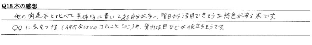 〇〇に気をつける(仲介会社とのコミュニケーション)や、質問項目などが役立ちそうです。(埼玉県志木市/S.Nさん)